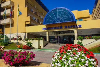 На территории санатория «Целебный Нарзан» в Кисловодске имеется собственный фонтан, а также прекрасные ландшафтные украшения в виде клумб с яркими цветами. Здесь приятно прогуляться и в жаркий день, так как все тропинки укрыты от солнца лиственными деревьями, дарящими тень и прохладу. Отсюда и свежий, чистый воздух, которым так полезно дышать всем отдыхающим.