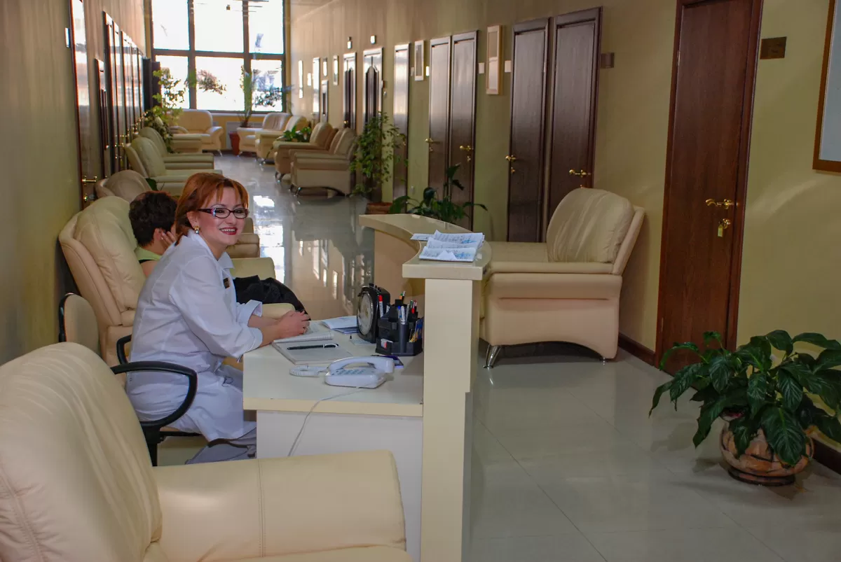 Регистратура в холле на 2 этаже в лечебном корпусе
