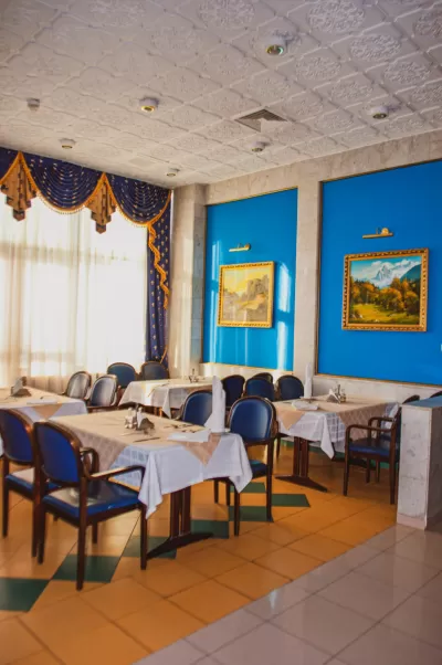 3-разовое диетическое питание по системе «шведский стол», при необходимости предоставляется диетическое меню. Осуществляется в ресторане санатория «Горный».